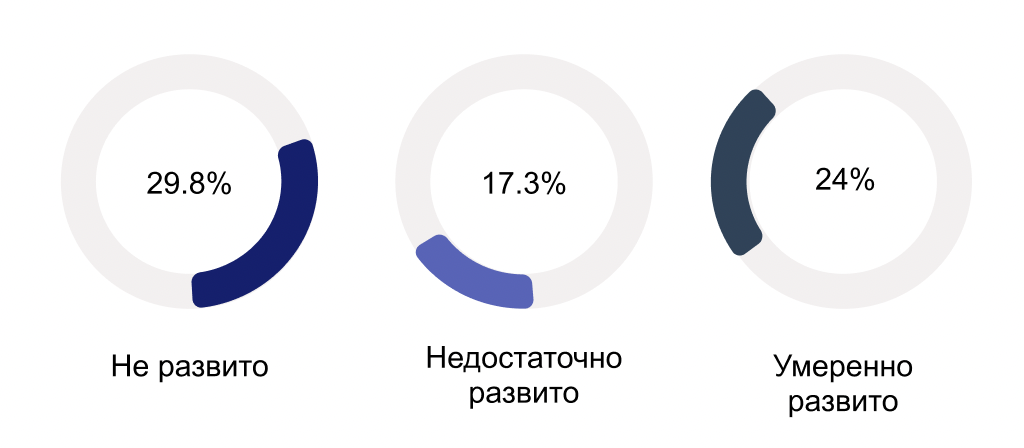 Работники отмечают, что в среднем использование BI-систем в компании имеет умеренную степень развития. В общем, 71% указывает, что существует место для развития BI-систем в компаниях.